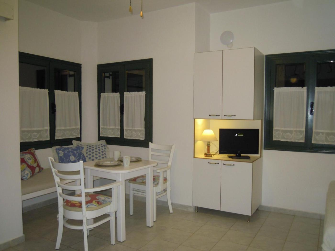 One-Bedroom Apartment. This spacious apartment consists of a separate bedroom with a large bed, a livingdining room with 2 single corner beds and a well-equipped kitchenette. Each apartment has either a veranda or balcony. Air conditioning and ceiling fans are provided. This apartment may accommodate up to 4 guests. ;