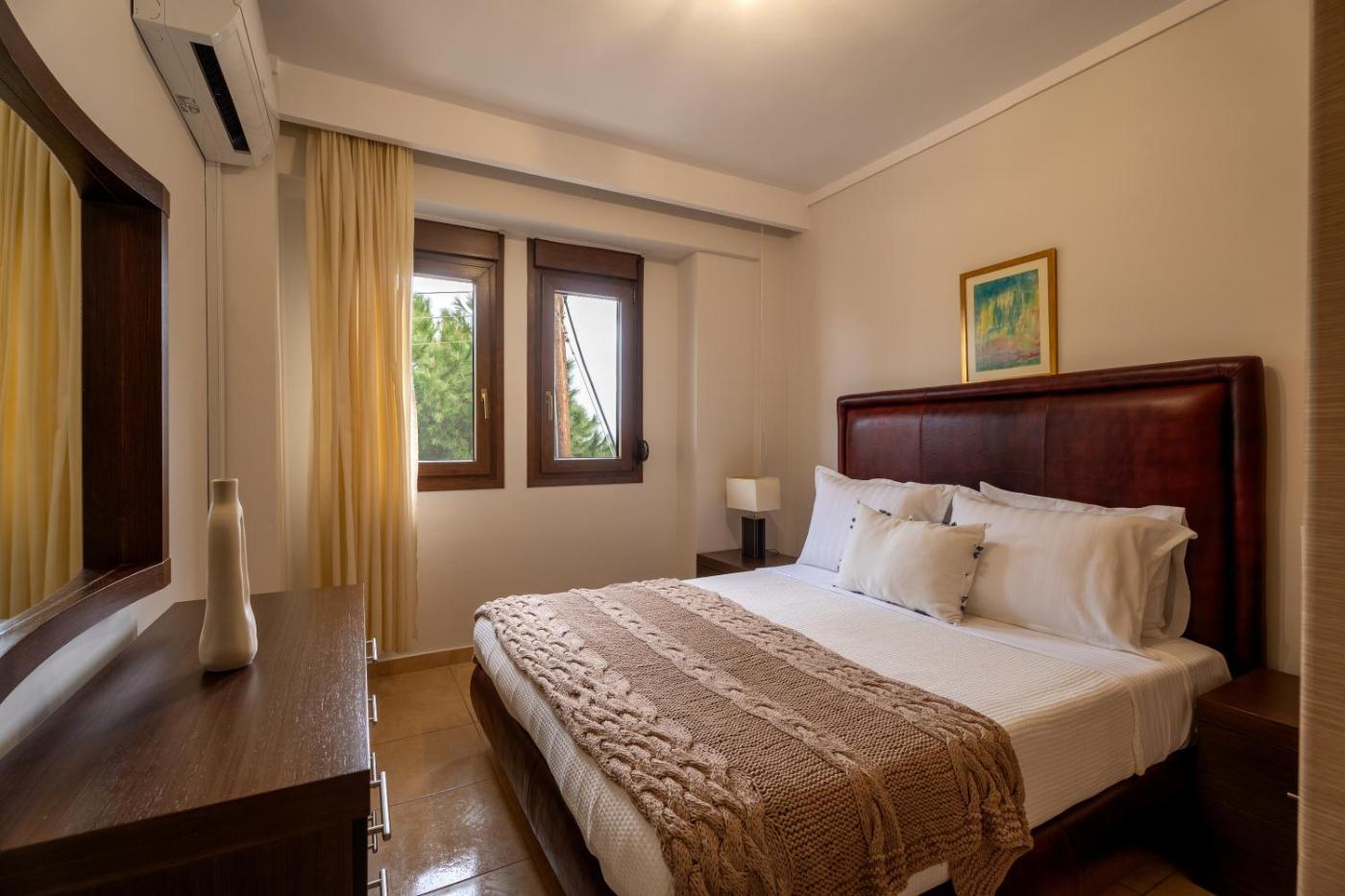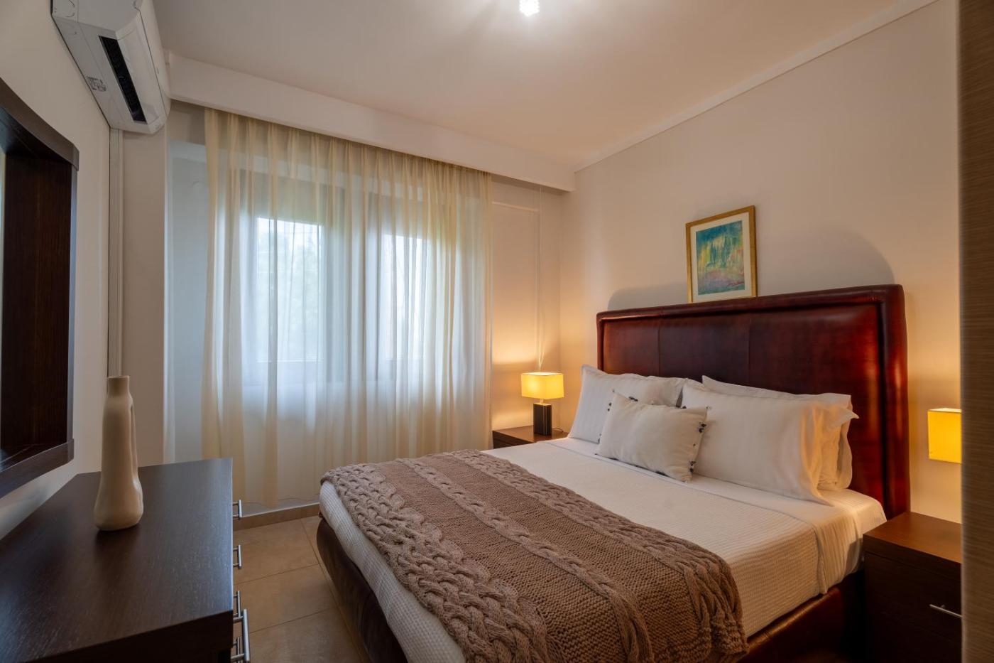 Two-Bedroom Apartment. Guests will have a special experience as the apartment offers a fireplace. Featuring a private entrance, this air-conditioned apartment consists of 1 living room, 2 separate bedrooms and 1 bathroom with a walk-in shower and a hairdryer. Guests can make meals in the kitchen that is equipped with a stovetop, a refrigerator, a dishwasher and kitchenware. The spacious apartment provides a washing machine, a tea and coffee maker, a seating area as well as a terrace with sea views. The unit offers 3 beds.