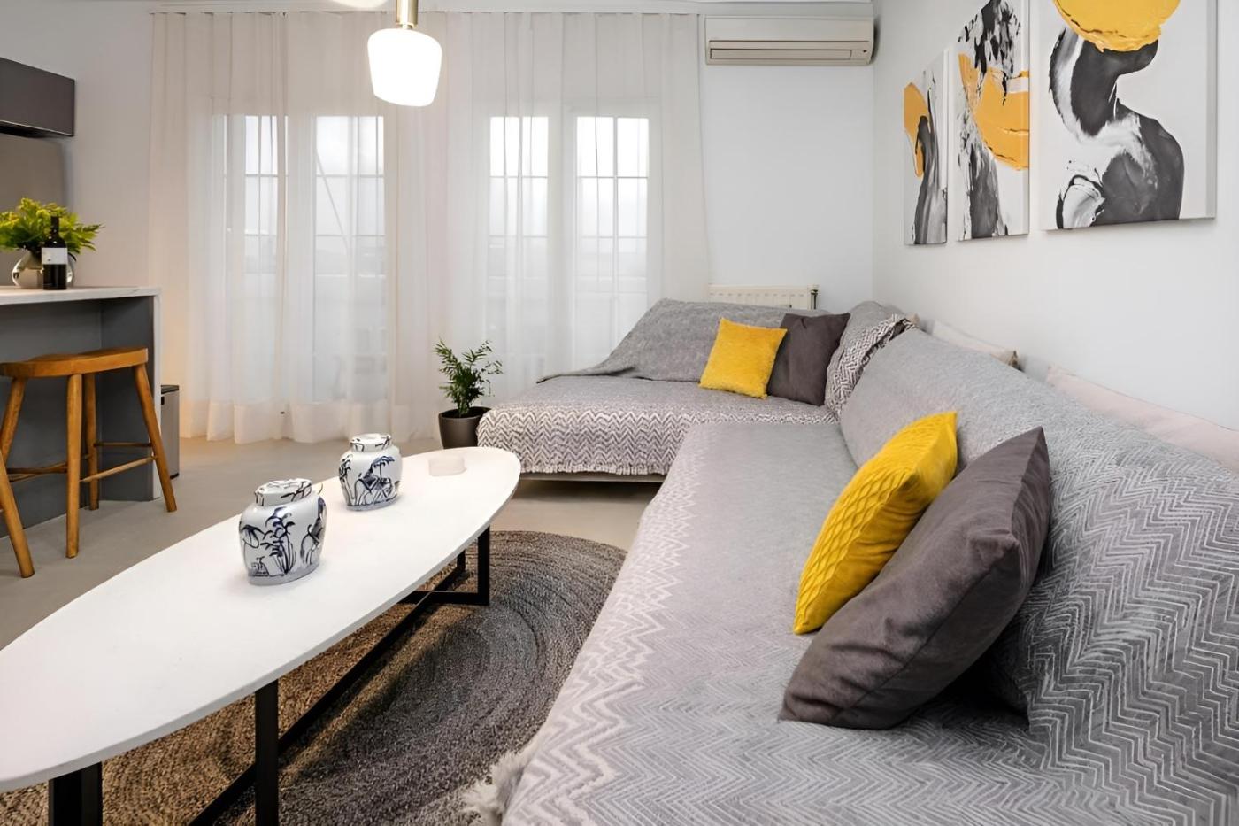One-Bedroom Apartment. Featuring a private entrance, this air-conditioned apartment consists of 1 living room, 1 separate bedroom and 1 bathroom with a walk-in shower and a hairdryer. Guests can make meals in the kitchen that is equipped with a stovetop, a refrigerator, a dishwasher and kitchenware. Boasting a terrace with city views, this apartment also provides a washing machine and a flat-screen TV with streaming services. The unit offers 2 beds.