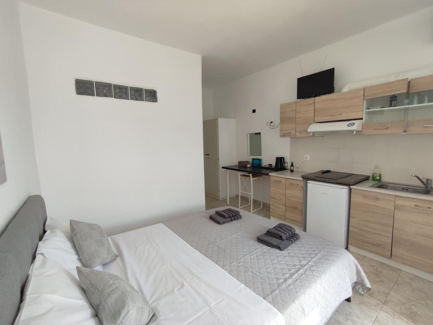 One-Bedroom Apartment. Boasting a private entrance, this air-conditioned apartment includes a kitchenette, 1 bedroom and 1 bathroom with a shower and a hairdryer. In the well-equipped kitchenette, guests will find a stovetop, a refrigerator, kitchenware and a tea and coffee maker. Featuring a terrace with mountain views, this apartment also offers a washing machine and a flat-screen TV. The unit has 2 beds.